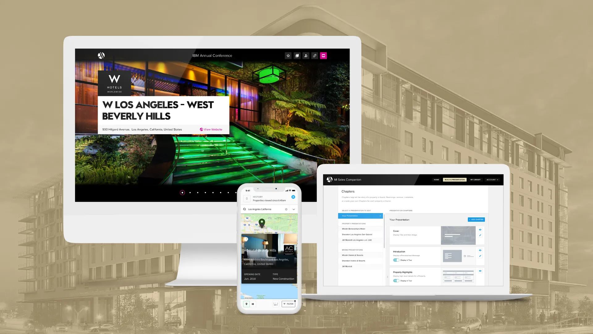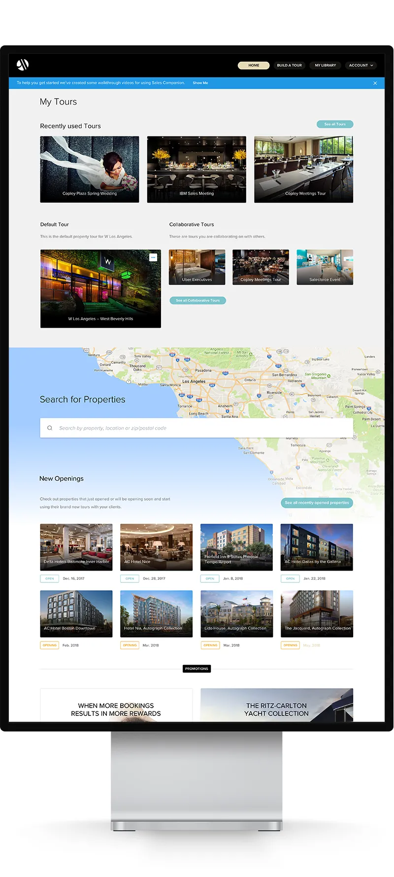 The core design challenge was building a product that builds products. Every UI decision had to work twice, once for the rep building the presentation, and once for the client receiving it. Components had to flex across wildly different hotel brand identities while maintaining system coherence.