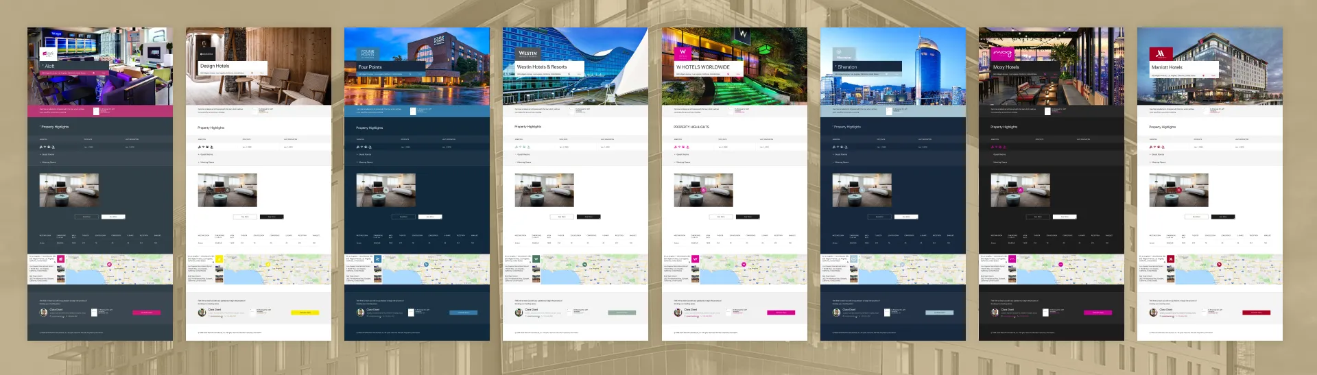 Sales Companion is Marriott's B2B enterprise platform, a tool that lets hotel sales reps build branded, data-rich client presentations in minutes. The system had to design presentations while being a product itself: pulling live property data, Google Maps integration, and auto-applying individual hotel branding across 30+ Marriott sub-brands. I joined the team as a freelance UI designer, working on search functionality, filtering systems, page sections, and responsive layouts across a tight one-month engagement.
